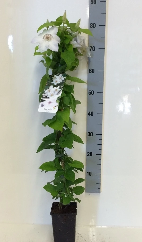 Bosrank (Clematis ‘Henryi’) bloeit met helder witte bloemen, en bloeit in juni-juli. De Clematis ‘Henryi’ heeft een volwassen hoogte van 4 meter en bereikt deze in ongeveer 3 jaar. De Clematis ‘Henryi’ is bladverliezend in de winter, en is zeer winterhard, temperaturen tot -28 graden Celsius zijn geen enkel probleem. U snoeit deze Bosrank aan het eind van de winter/begin voorjaar. Als u de Bosrank ‘Henryi’ wilt gebruiken langs schutting, muur, of gevel, raden wij 3 planten per strekkende meter aan voor een mooi vol resultaat. Bij lagere schuttingen of muren kunt u dit aantal verminderen omdat de Bosrank wel ruimte nodig heeft om te kunnen groeien.
